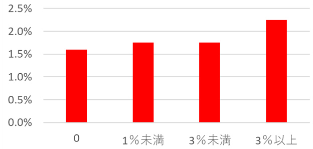 こういった観点から、「女性に対する処遇」をみた時、それがきちんとできている企業は業績的にも優れているのではないか、と思われます。そこで、独立行政法人経済産業研究所の資料「企業における女性活用状況と企業業績との関係」のなかで、女性活用の状況と利益率との関係を示したグラフがあります。