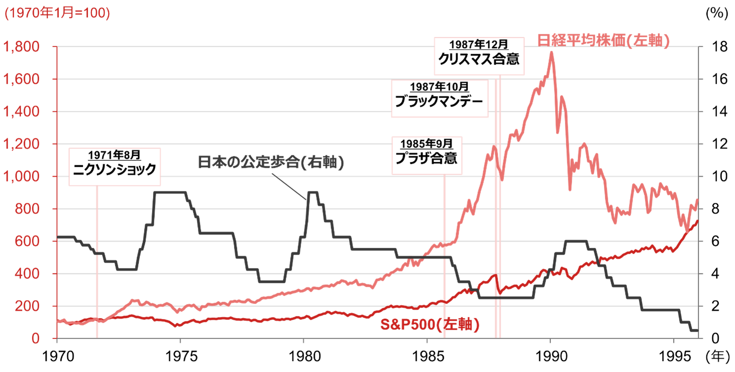 日本では1987年には株高と地価高騰が問題視されていましたが、日銀が利上げに転じることができなかった背景には、米国の非難を恐れた日本政府からの圧力があったと言われています。