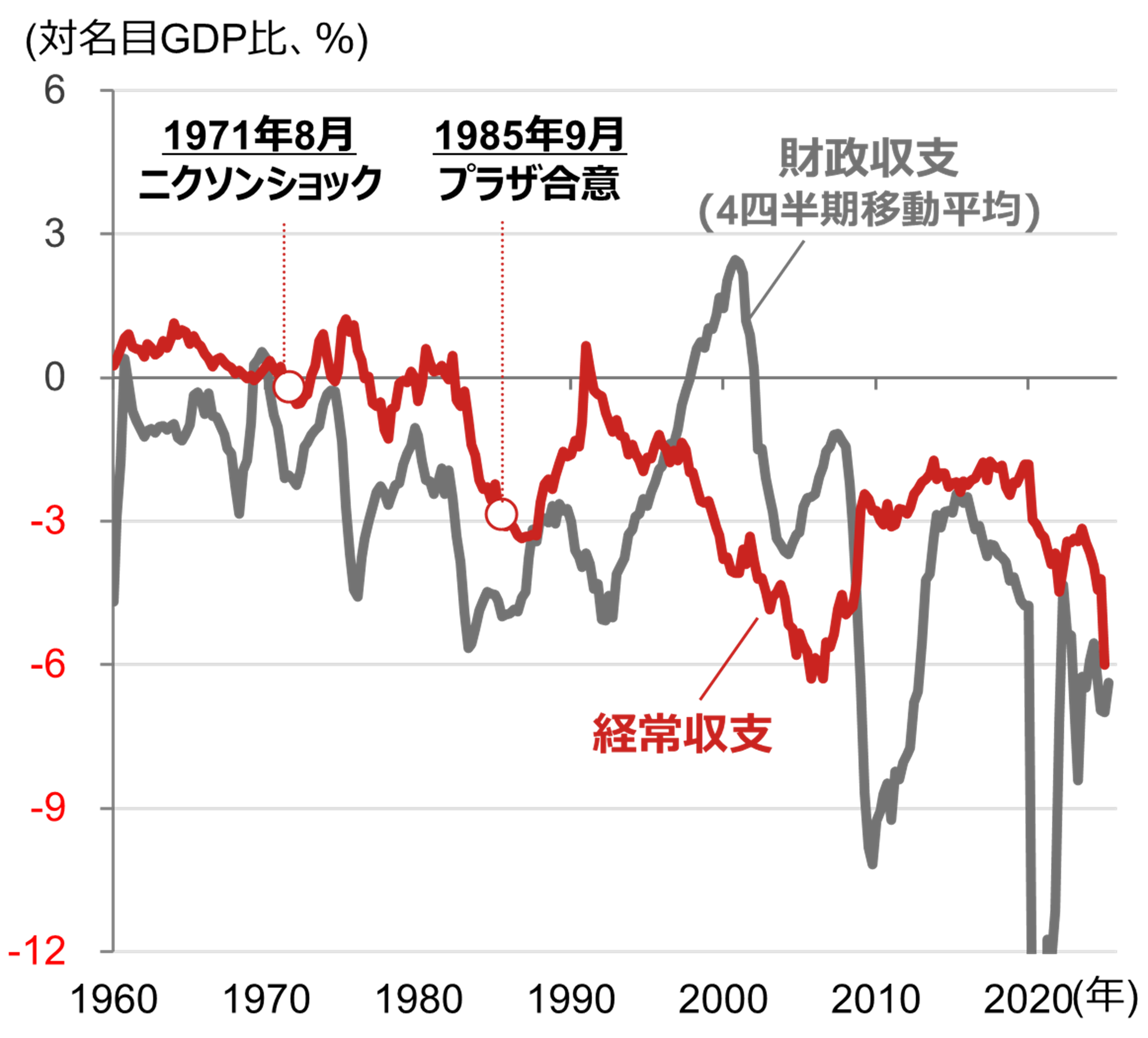 図表2:米国の双子の赤字(経常収支・財政収支)