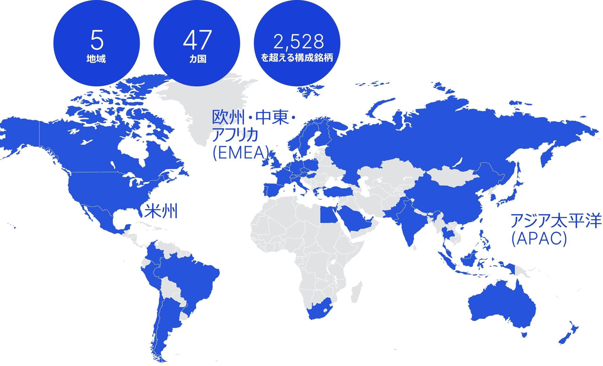 具体的には、一定以上の企業規模があり、十分に取引されていて、国境を越えて投資できることが条件です。このような厳選されたアプローチにより、グローバル市場を広くカバーしつつ、実際に投資家の皆様が投資可能な企業群を指数として表しています。