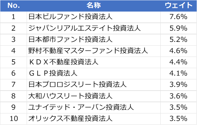 東証REIT指数の組入上位銘柄とそのウェイト