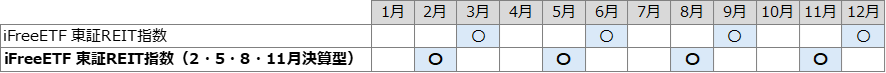 既存の「iFreeETF 東証REIT指数(証券コード:1488)」と今回上場する「iFreeETF 東証REIT指数(2・5・8・11月決算型)(銘柄コード:443A)」の決算月の違い