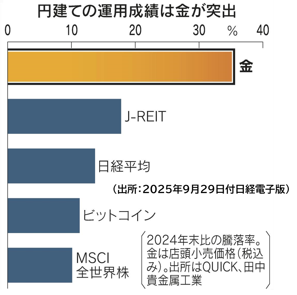 金1グラム2万円を突破 高値でも購入、インフレ下で資産防衛(日経電子版 2025年9月29日)