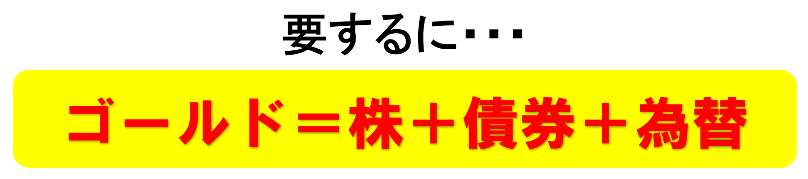 逆に株が下がると、それはそれで安全資産たる金にマネーがシフトします。為替はすでに説明したとおりで通貨の価値が下がる(円安など)と金は代替通貨としての魅力が増してきます。
