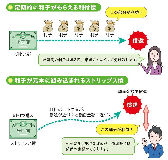 米国債には、利付債とストリップス債の2つがあります。