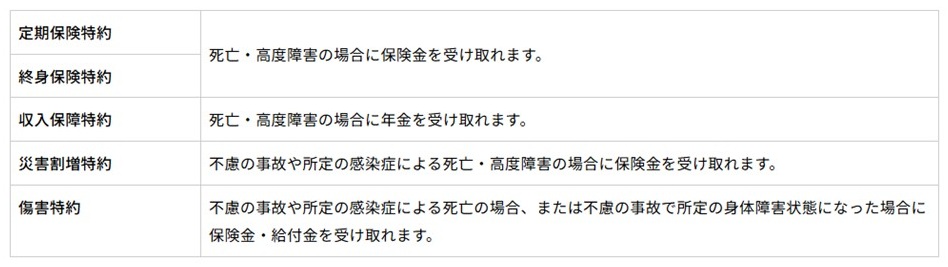 出典)公益財団法人 生命保険文化センター「主に死亡を保障する特約」