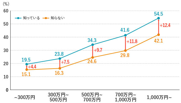 他にも、金融リテラシーの自己評価を比較すると、「報酬に満足している群」の方が、「不満がある群」に比べて金融リテラシーに自信がある人が多いことが分かりました。また、どの年収区分でも、報酬に満足している人は家計の収支把握をしている割合が高く、報酬に満足していない人は、年収が高くてもお金の面で苦労している人が多いことが分かりました(調査データの詳細は、コラム下段のミライレポート本編参照)。
