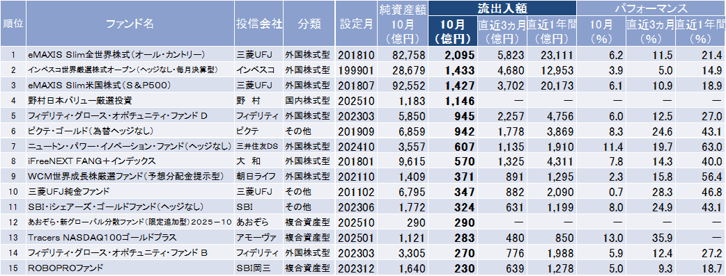 2025年10月 投資信託の資金フロー
