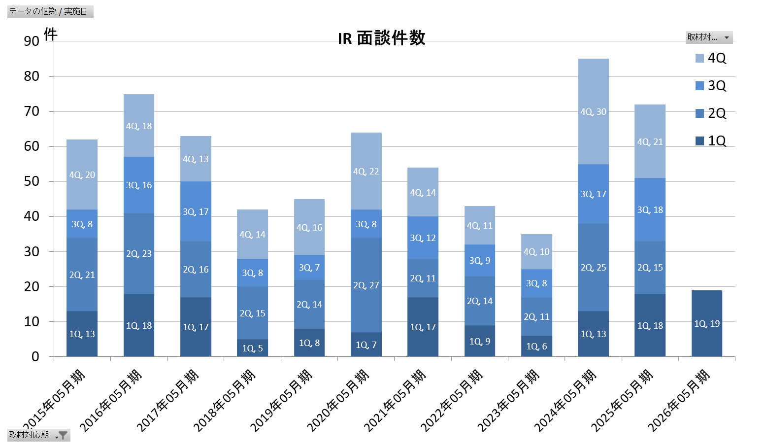かくして開示。そこに待っていたのは、予想以上な好意的な市場からの反応であった。その後、新しい中期経営計画の発表もあり、IRの取材件数は急上昇。主要投資家からは「透明性が高い」と評価する声が届いた。