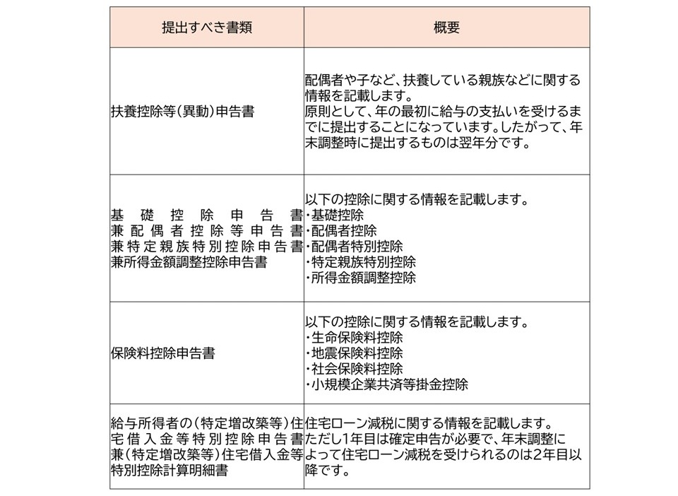 年末調整を受ける人は、勤務先に以下の書類を提出する必要があります。*2