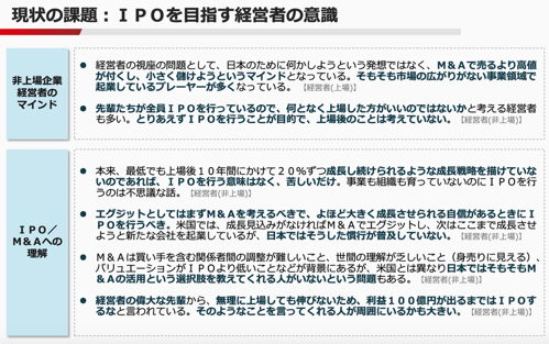――先輩たちが全員IPOを行っているので、何となく上場した方がいいのではないかと考える経営者も多い。とりあえずIPOを行うことが目的で、上場後のことは考えていない。――