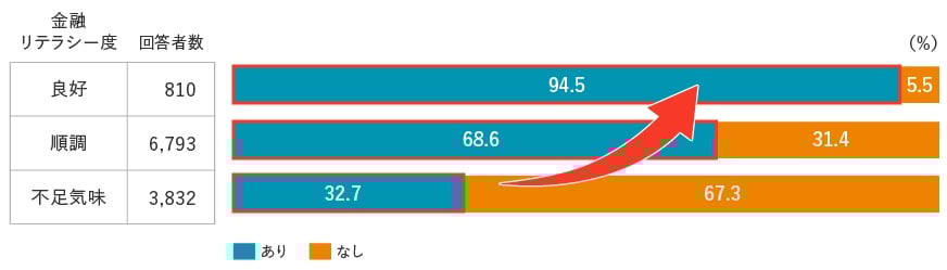 金融リテラシー度が「良好」層は「不足気味」層の約3倍、資産形成に取り組んでいる