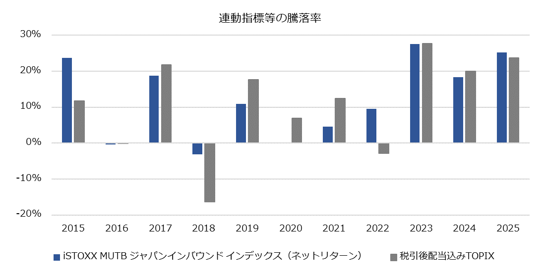 | 対象指標 | iSTOXX MUTB ジャパンインバウンド インデックス(ネットリターン) | ||||