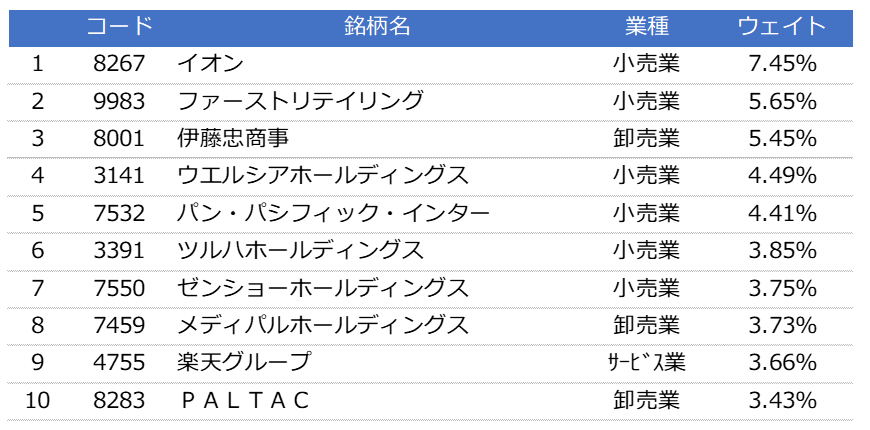 構成銘柄のウェイト上位10銘柄(2025年10月31日時点)
