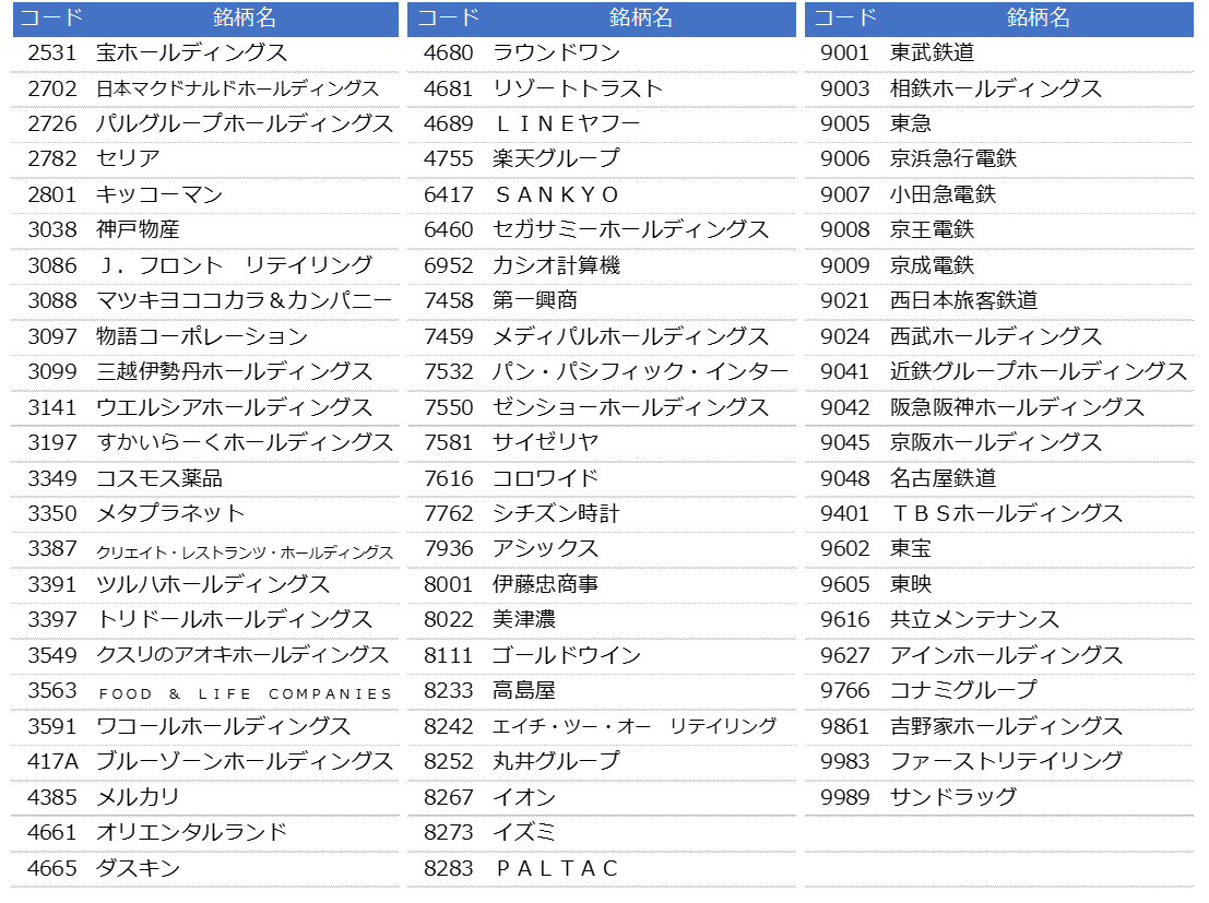 2025年10月31日時点の構成銘柄は、以下の70銘柄です。