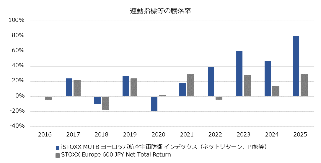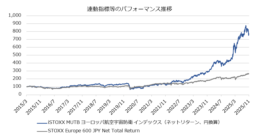| 対象指標 | iSTOXX MUTB ヨーロッパ航空宇宙防衛 インデックス(ネットリターン、円換算) | ||||