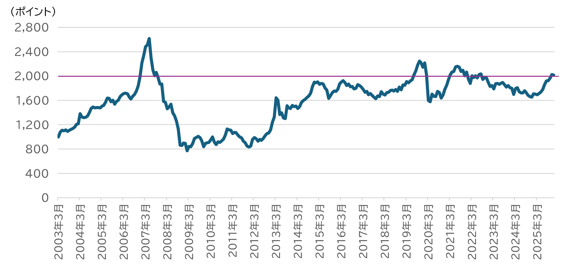 東証REIT指数の推移(2003年3月末~2025年12月末、月末時点)