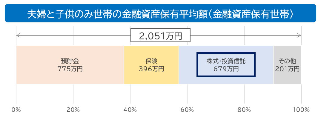 NISA制度の非課税保有限度額は一人あたり1,800万円、夫婦であれば3,600万円です。2025年12月にJ-FLEC(金融経済教育推進機構)が公表した調査によると、金融資産を保有する夫婦と子どものみの世帯の金融資産保有平均額は2,051万円(中央値は1,000万円)であり、そのうちNISAの投資対象資産となる株式や投資信託の保有額を合わせた値は679万円でした(【図表3】)。このデータから、多くの世帯は夫婦の非課税保有限度額内で十分に収まっているため、更に子ども一人あたり600万円の枠は一部の世帯を除いて必要がないようにも思えます。
