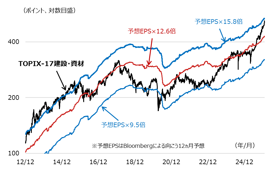 [図表3] TOPIX-17建設・資材セクターと予想EPSに基づく妥当レンジの推移