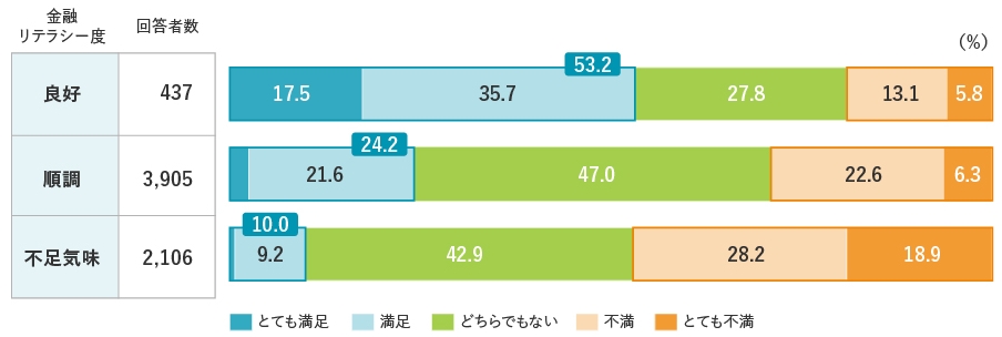 【図表3】金融リテラシー度別 会社・団体の報酬水準に対する満足度