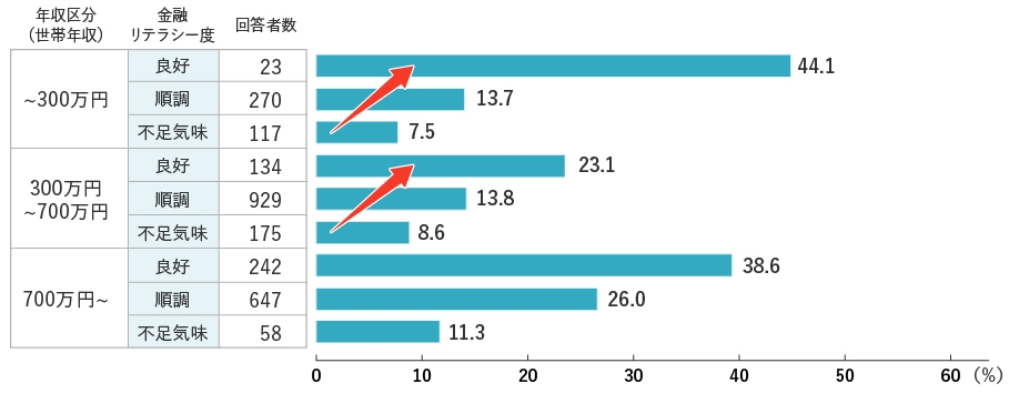 【図表2】年収区分と金融リテラシー度別 資産形成率