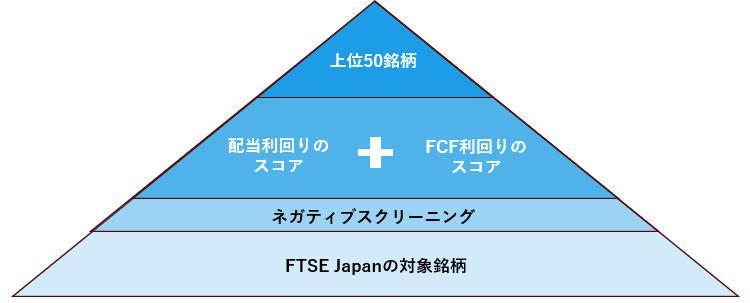 | 対象指標の概要 | FTSE日本株高配当キャッシュフロー50指数(配当込み)は、配当利回りとフリーキャッシュフロー利回りで評価した日本株50銘柄で構成される指数です。 | ||