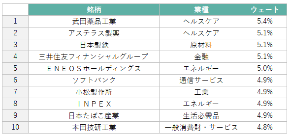 当指数は、配当利回りとフリーキャッシュフロー利回りをスコア化し、日本株の上位50銘柄を選定します。