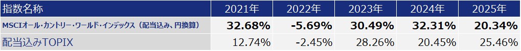 【対象指標】MSCIオール・カントリー・ワールド・インデックス(配当込み、当社円換算ベース)