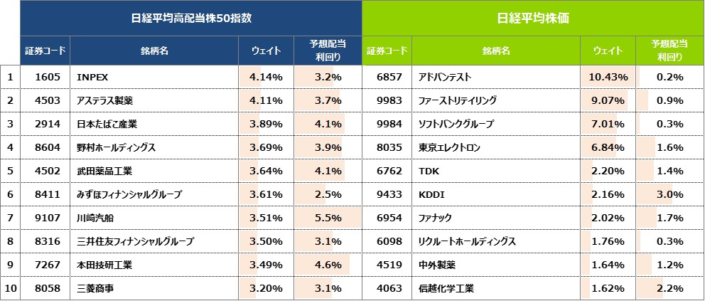 連動指標の主要構成銘柄