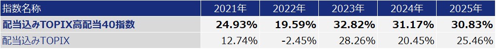 | 対象指標 | 配当込みTOPIX ⾼配当40 指数 | ||