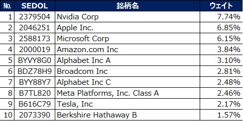 Quick:-、Bloomberg:SPTR500N、Refinitive:.SPXNTR