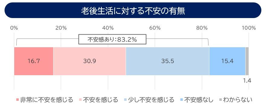 その一方で、老後生活に対して不安を感じている人も多数を占めます。(【図表5】)