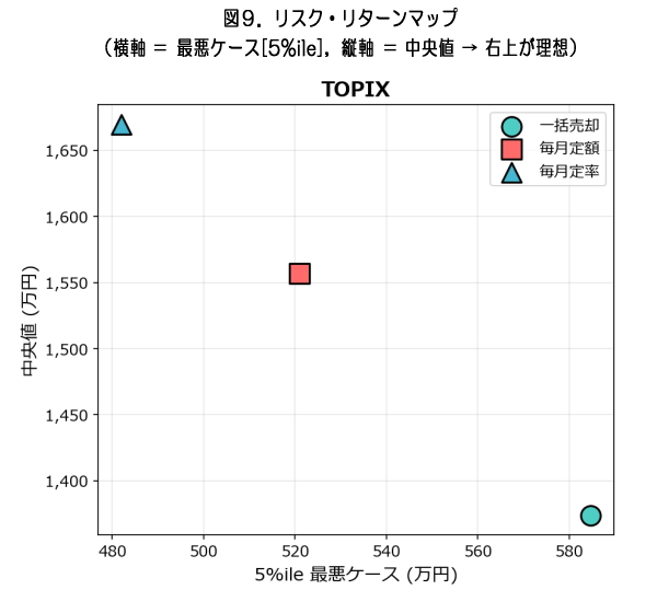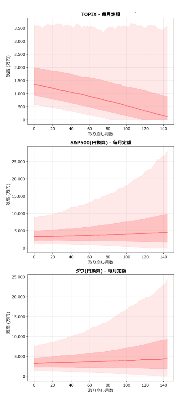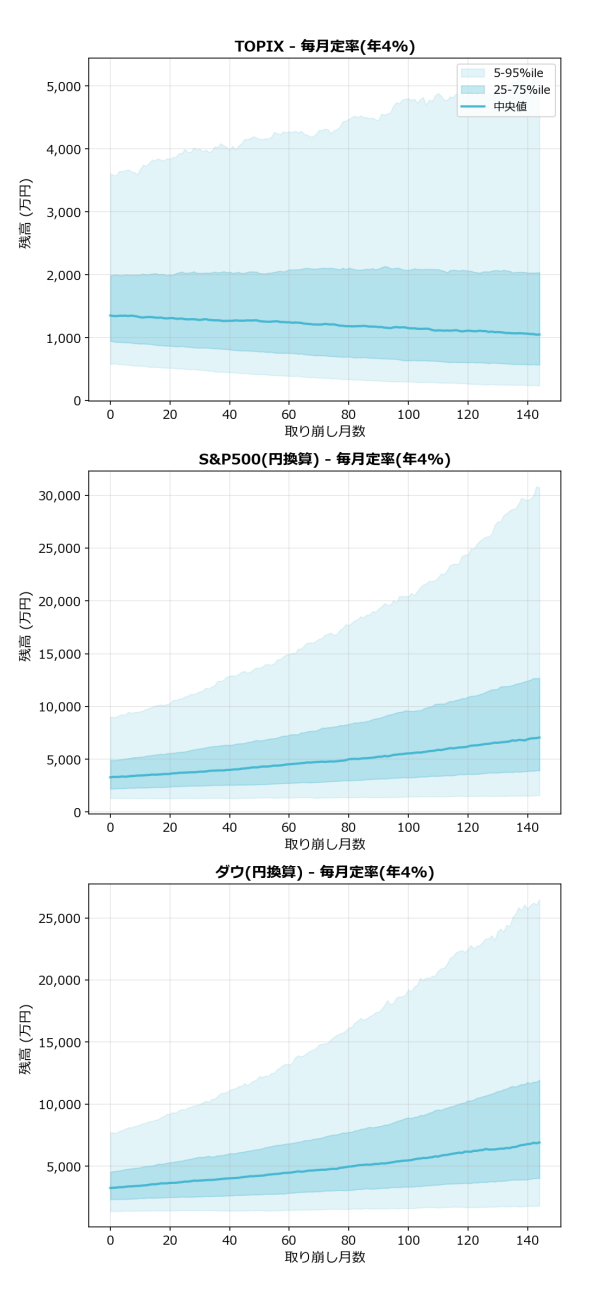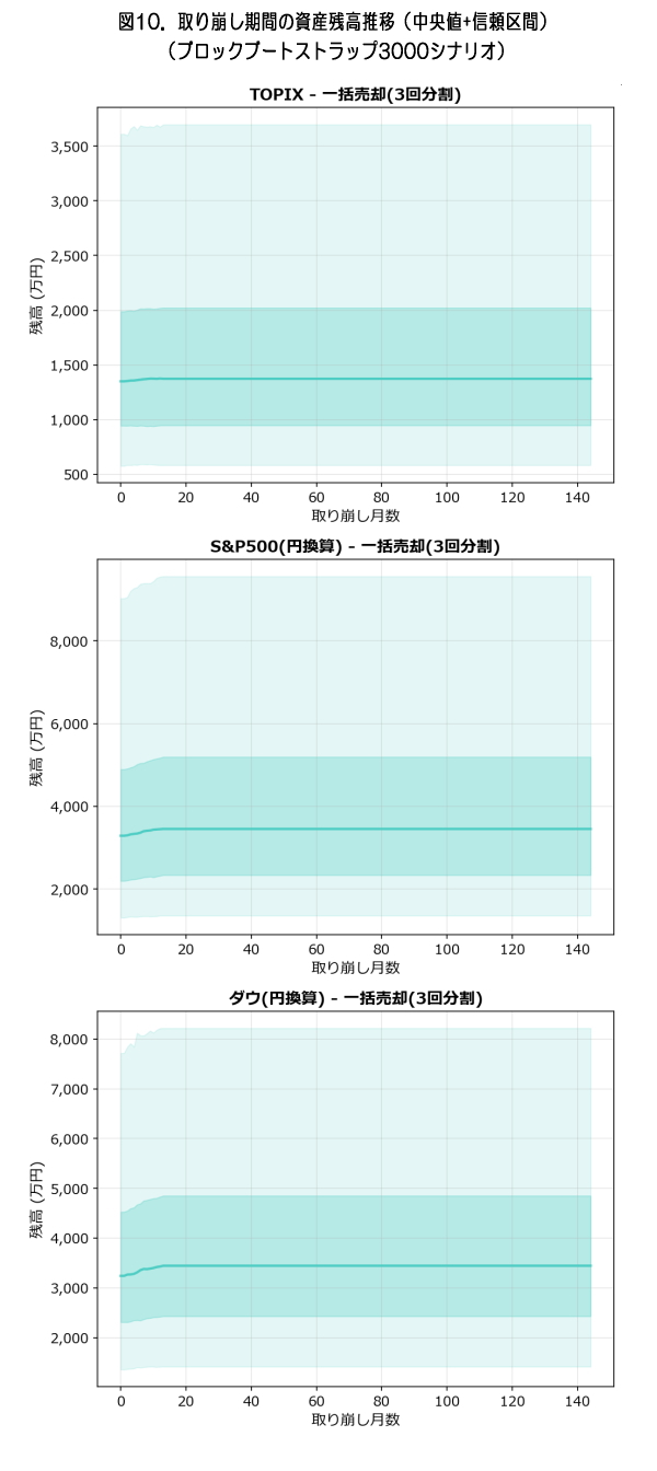 ※ブロックブートストラップ法は月次リターンの時系列的な自己相関を保持した再サンプリング手法ですが、市場の構造変化(レジームチェンジ)は考慮していません。