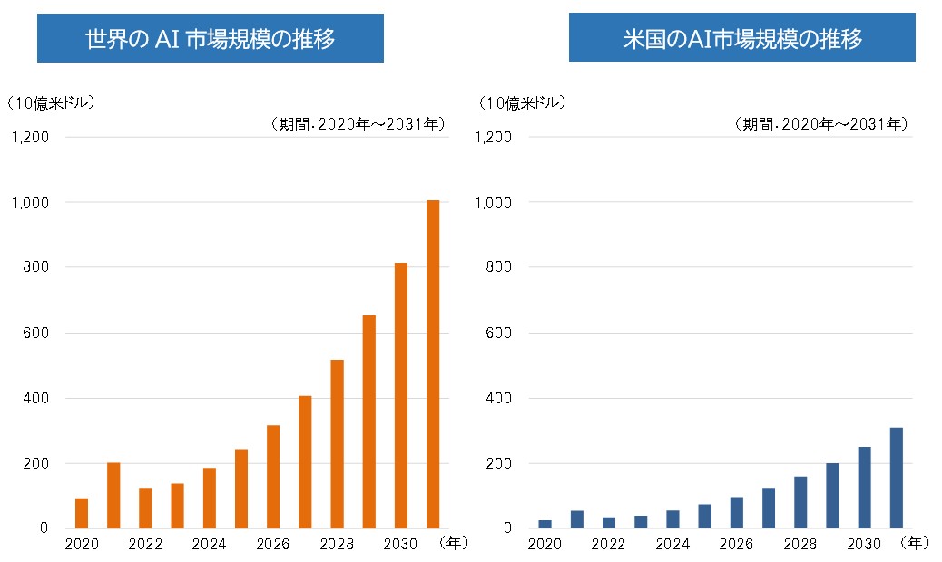 世界のAI市場規模は2025年に2,400億米ドルを超え、2031年には市場規模が1兆米ドルを超えると予想されています。