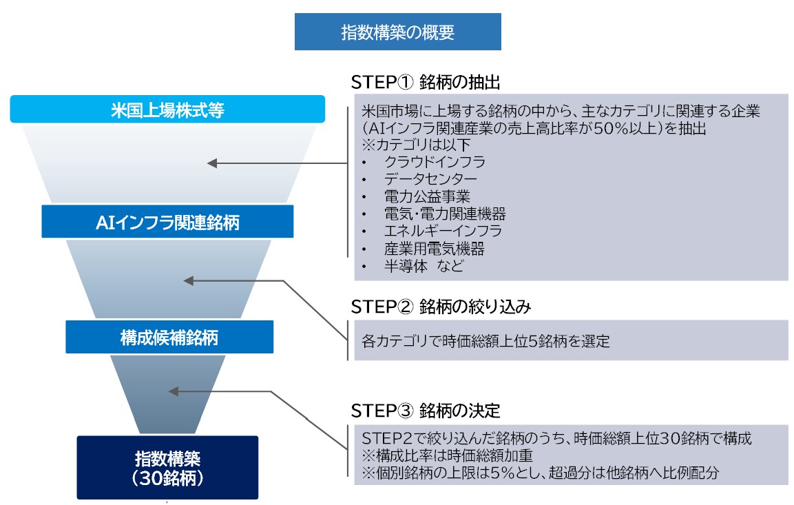弊社では、世界のAI市場をけん引する存在である米国に着目し、AI市場成長の根幹となる「AIインフラ」領域への投資手段を提供すべく、本ETFの組成に至りました。