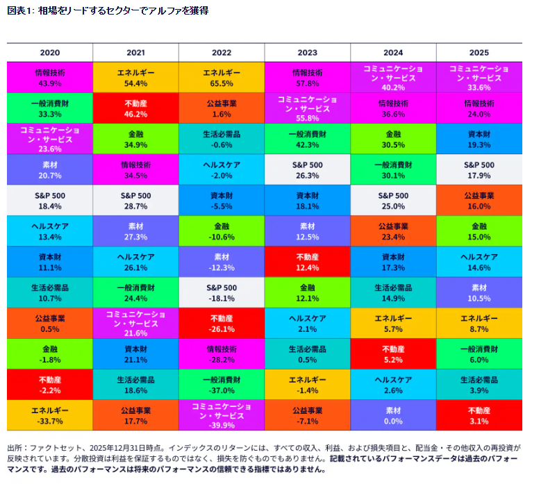 期待リターンが高いセクターをオーバーウェイトし、低いセクターをアンダーウェイトすることで、投資家はそうした変動性を超過リターンの潜在的源泉に変えることができます。