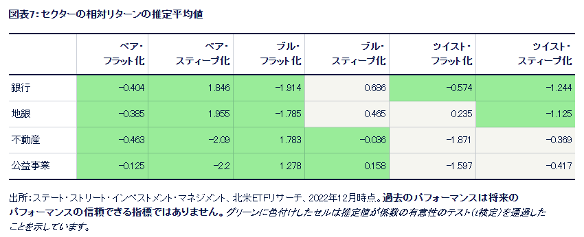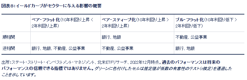 このイールドカーブがセクターに与える影響に関する分析結果は、概ね想定どおりの内容となっています。