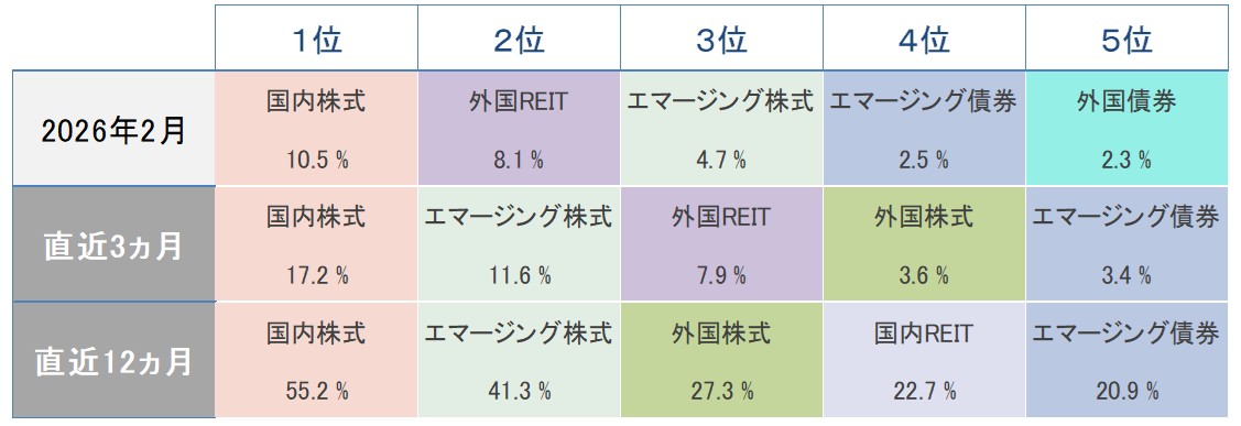 パフォーマンス上位5資産のランキングと実績