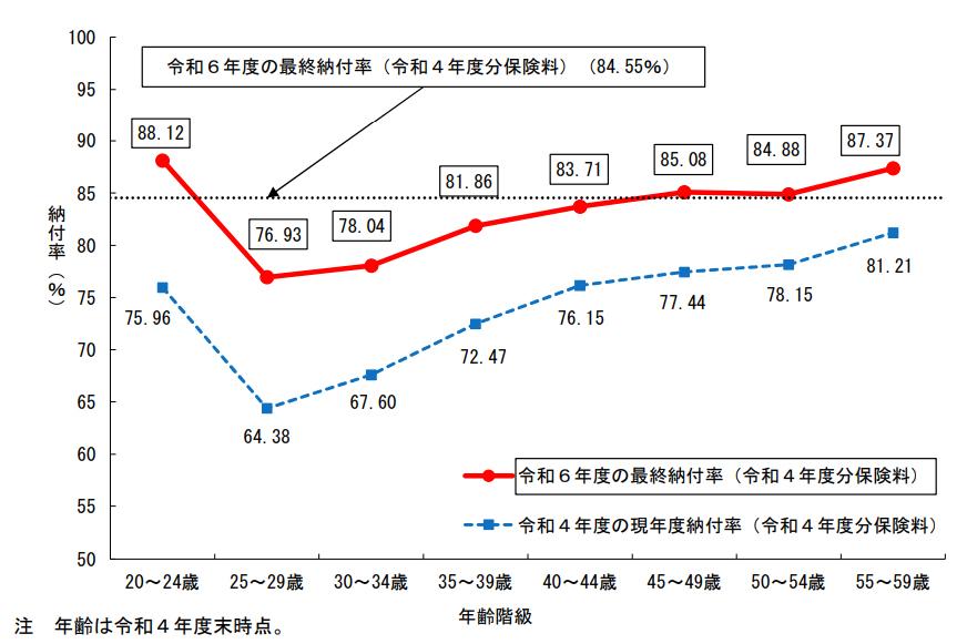 また、国民年金保険料の納付率の指標において、国民年金保険料は納付期限から2年以内に納めることができるので、過年度2年目納付率を最終納付率としています。
