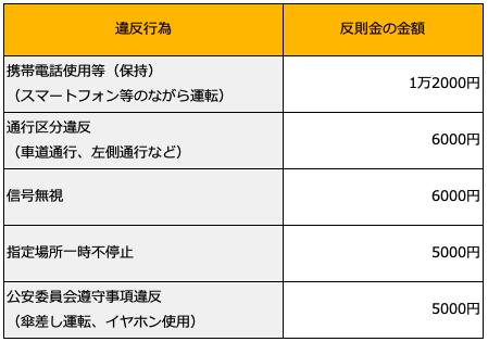 実際に、どのような違反にどれくらいの反則金が科せられるようになるのでしょうか?
