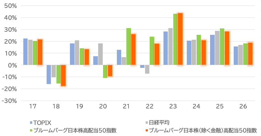 | 対象指標 | ブルームバーグ日本株(除く金融)高配当50指数(配当込み) | ||