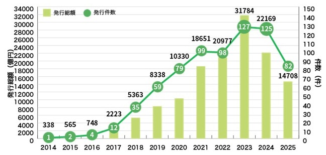 図1 国内企業等によるグリーンボンドの発行実績(2025年11月14日時点)